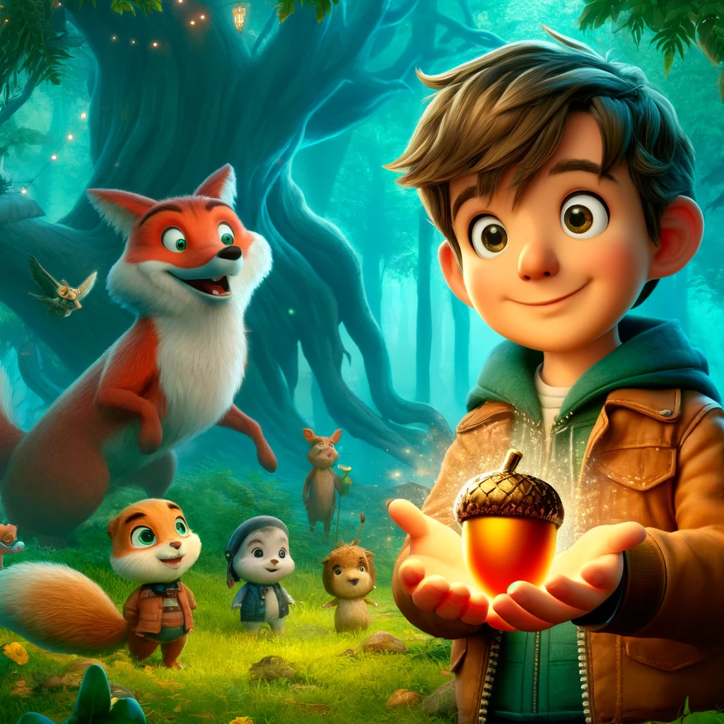 Max, ein neugieriger Junge, entdeckt eine magische Eichel im Wald, die ihn in eine zauberhafte Welt führt. Dort trifft er auf Felix, den sprechenden Fuchs, und erfährt, dass der Wald von einer bösen Hexe bedroht wird. Gemeinsam machen sie sich auf die Suche nach dem Herz des Waldes, um die Hexe zu besiegen. Mit Mut und der Kraft der Magie gelingt es Max, den Wald zu retten und die Hexe zu vertreiben. Zurück in seinem Dorf behält Max die magische Eichel als Erinnerung an sein großes Abenteuer und weiß, dass er immer wieder in die magische Welt zurückkehren kann.